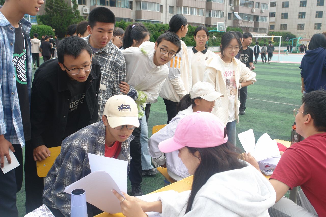 书法摊位前,队员贾馨语和赵文强挥毫泼墨,行云流水的笔触吸引了不少围观的学生。他们跃跃欲试,不少学生熟悉毛笔的握笔和运笔方法,字体大方美观,让队员们眼前一亮。成语接龙摊位前,由队员开题,学生们排成一列,轮流回答。猜灯谜的摊位热闹非凡,学生们围着灯谜大开脑洞,冥思苦想。当揭晓答案后,他们恍然大悟,欢声笑语萦绕在操场上空。