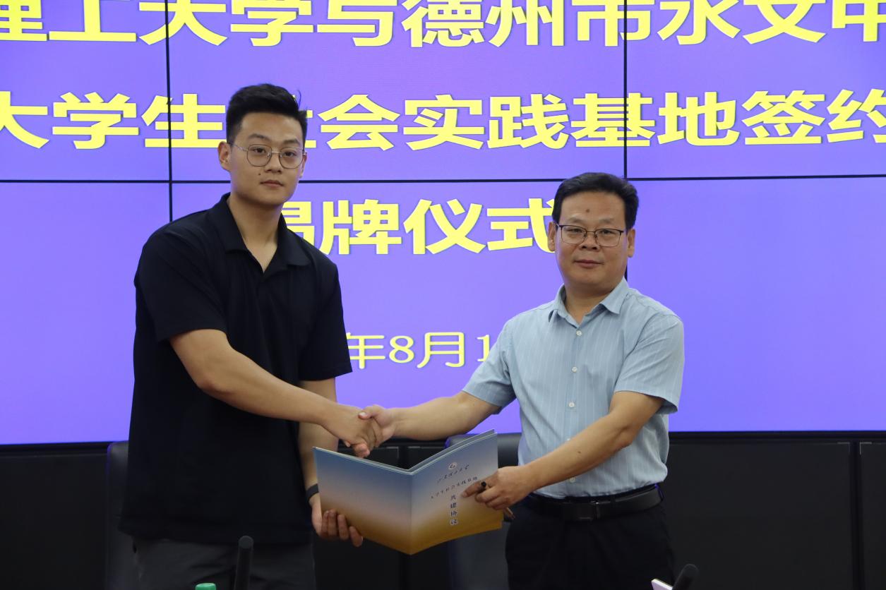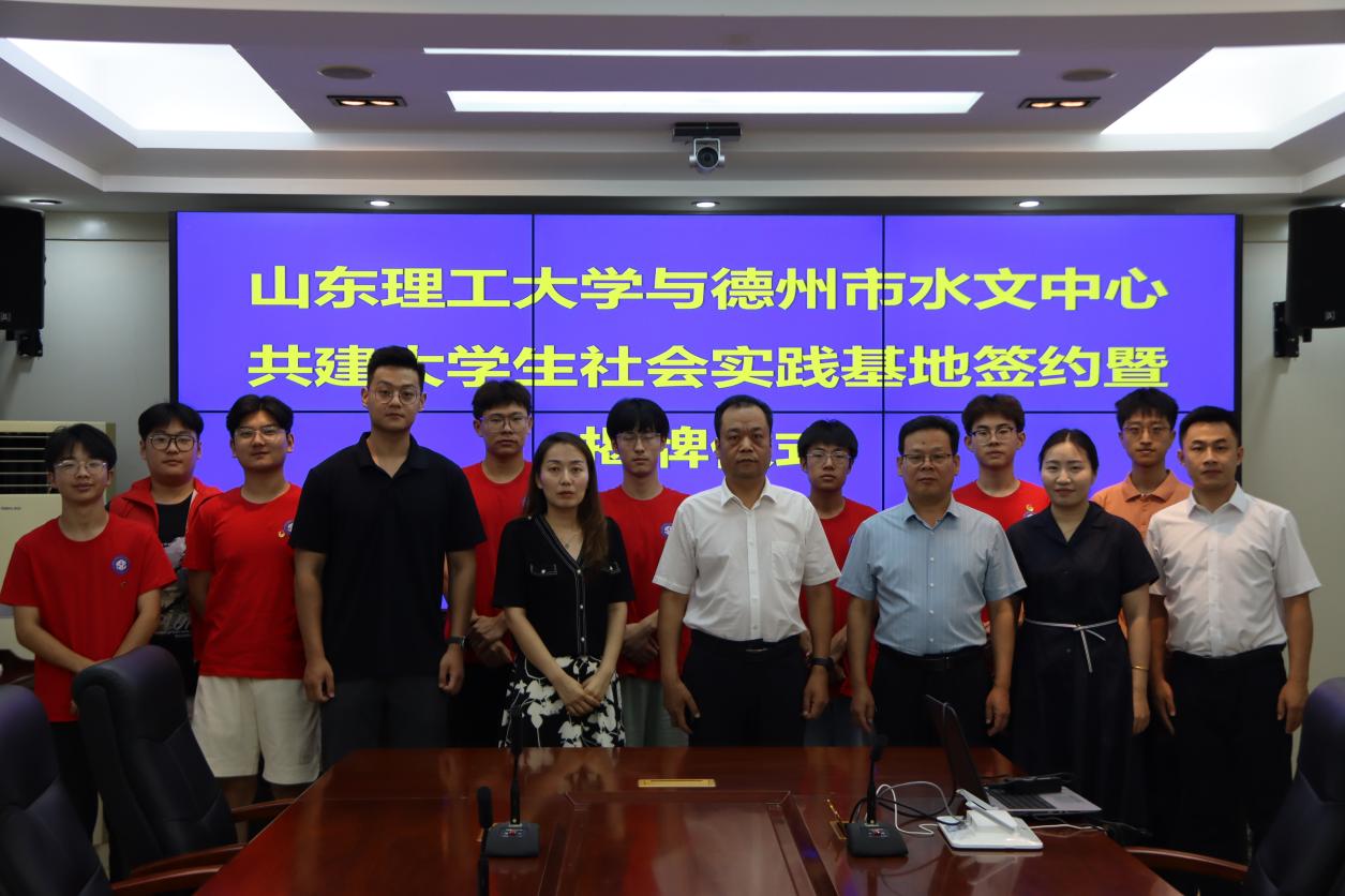 8月13日下午山东理工大学“青襟数维,共护黄河”社会实践团与德州市水文中心成功举行大学生社会实践基地签约暨揭牌仪式。山东理工大学建筑工程与空间信息学院团委书记及教师、学生代表,德州市水文中心党委书记、主任及有关负责同志出席仪式。