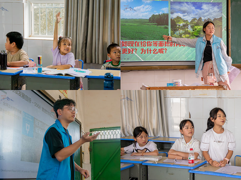 课程播种,绿意播撒助力绿色发展,与山区儿童共筑可持续梦。团队入选联合国开发计划署与中国大学生知行促进计划共同发起Movers4Climate“绿色乡村青年行动”。在充满活力的夏令营舞台上,团队致力于成为连接可持续未来与乡村青少年的桥梁。从日常生活中细微的垃圾分类实践,到遥远海域上触目惊心的污染现状,一场场精彩课堂的展示不仅传授前沿的可持续发展理念与气候变化知识,更激发山区儿童对绿色发展的深刻认识与热情参与,推动环保教育在这片广袤土地上生根发芽。