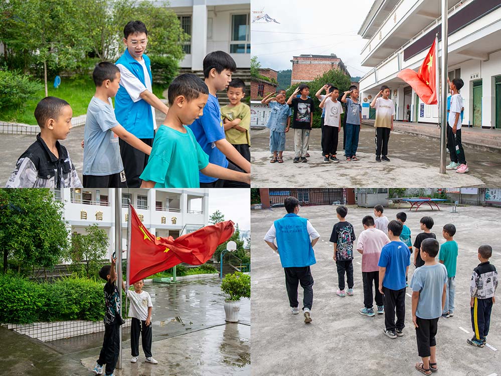 国旗飘扬,向阳生长爱国教育是夏令营设计不可分割的一部分。大课间,操场上满是孩子们的欢声笑语,但有一群孩子却没有参与大家的游戏,而是在太阳下一次又一次挥动手臂,训练齐步、敬礼,他们便是国旗护卫队。孩子们站立于阳光下,汗水顺着脸颊滑落,却丝毫未减眼中的清澈与坚定。伴随国歌奏响,五星红旗在蓝天白云下缓缓升起,这是偏远穷困的山区最庄严肃穆的升旗仪式。这一刻,时间仿佛被赋予了特殊的意义,成为队员与孩子们心中永恒的记忆。