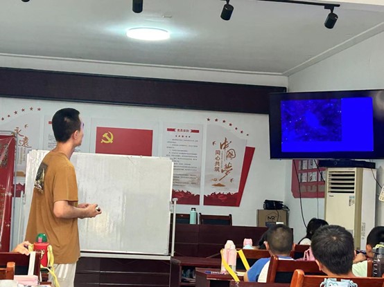 首先出场的是姜明宇同学,他为孩子们带来了精彩的中国近代史课,简明扼要地介绍了抗日战争到港澳回归这一段中华民族近现代的奋斗史。他的讲解使原本看似枯燥的历史妙趣横生,同学们听得津津有味,在了解历史知识的同时更潜移默化地埋下了一颗爱国的种子。课后姜明宇同学还为学员们播放了精心准备的历史纪录片,帮助学员们更深刻且全方面地了解历史。