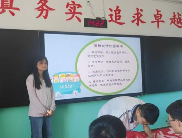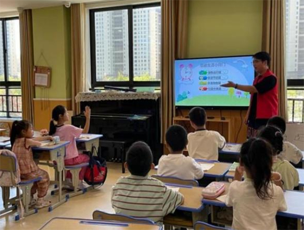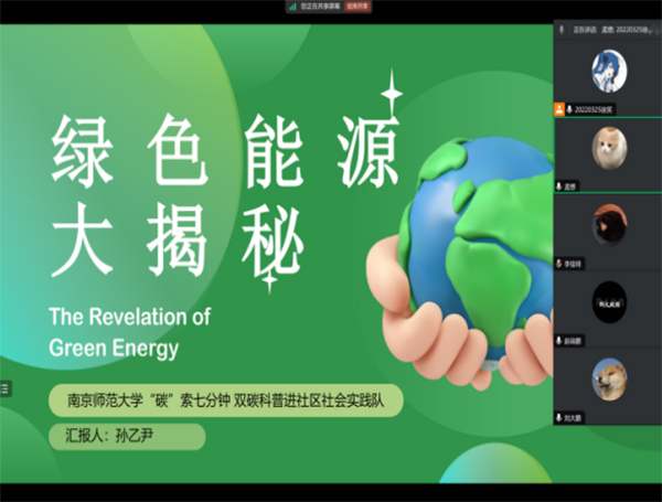 我们团队对接了江苏、山东、新疆、甘肃、福建等地区的12个基层社区、8所学校、3所幼儿园,科普超过1000名群众。团队成员彭正雯、王世韵走进中学,为青少年科普低碳生活的重要性,徐梓翔、孙乙尹对接幼儿园,通过生动有趣的课件为小朋友带来低碳生活与双碳政策的科普,徐笑同学更是借助互联网,开展云端小课堂。团队成员真正做到了“好知识,广科普”。而宣讲宣传结束后大家的热情与人民群众精神内核实现同频共振,受到了宣讲对象的一致好评。