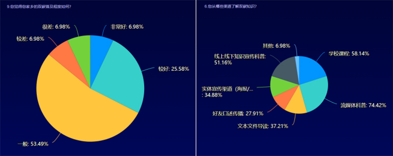 本团队将五个省份作为调查地区,以中小学生、家长、教师、社区工作者等人群作为调查对象,我们筛选调研问题、制作调查问卷、积极寻找访谈对象,线上线下双管齐下,采用问卷调查、访谈、焦点小组讨论等多种方式开展调研。成员张洋线下访谈青少年,倾听他们对低碳的理解,徐笑同学走进村委会,对工作人员进行访谈,深入地了解了社区内的低碳方针。本团队调研覆盖5个省份,11个城市,总计3000多人,采用大基数大角度的调研模式,确保了数据的丰富性和可靠性。在调查结束后,团队成员展开线上会议,系统性地分析调研数据,对我国低碳教育情况有了进一步的了解,并提出针对性建议。