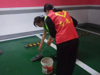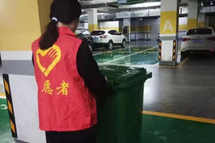 活动开始后,志愿者们分散到社区的各个角落。在社区的公共区域,几个志愿者正齐心协力地清理着堆积已久的垃圾。他们不怕脏、不怕累,用手将一些难以清扫的垃圾捡起,放入垃圾桶中。之后用扫把将周围的多余落叶扫进树丛。随后他们来到了小区的地下车库,将地下车库的垃圾桶摆放整齐,,这时一位年轻的志愿者,正在帮助保洁阿姨拖地。她说:“能为社区做点事情,我觉得很有意义。