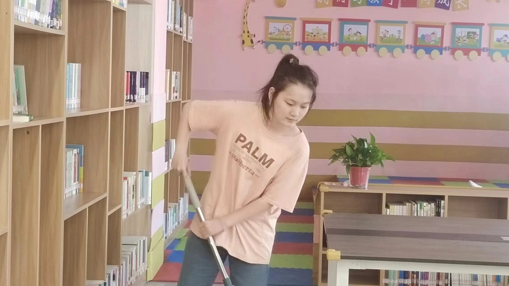 除了在信访办公室之外,实践团成员来到灯塔书屋成为图书管理员,负责打扫卫生,摆放查找书籍,陪小朋友,为带小朋友的家长提供便利。