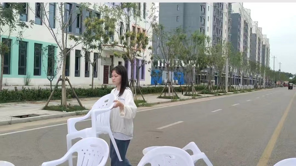 注:图为实践团成员摆放凳子实践团成员在8月1日建军节这一天,参加了庆八一暨第二届美食文化节主要是布置现场,为退役军人颁发荣誉证书。