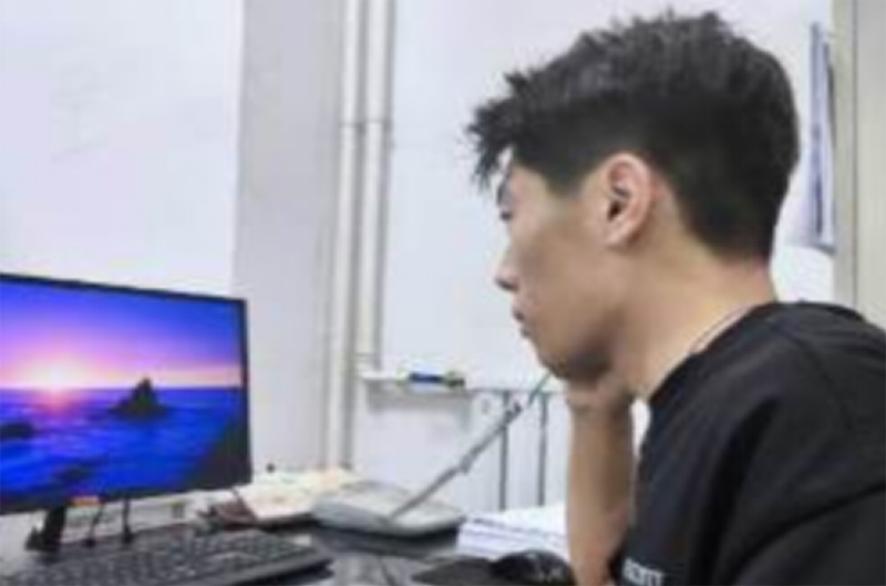 注:图片为“寻光”实践团成员沈庆康在办公大楼当接听员