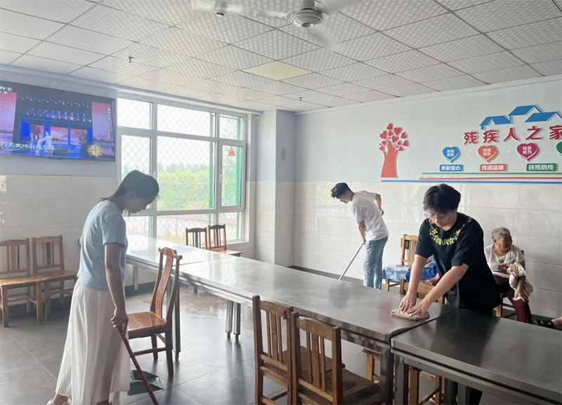 图为实践团成员帮助打扫卫生