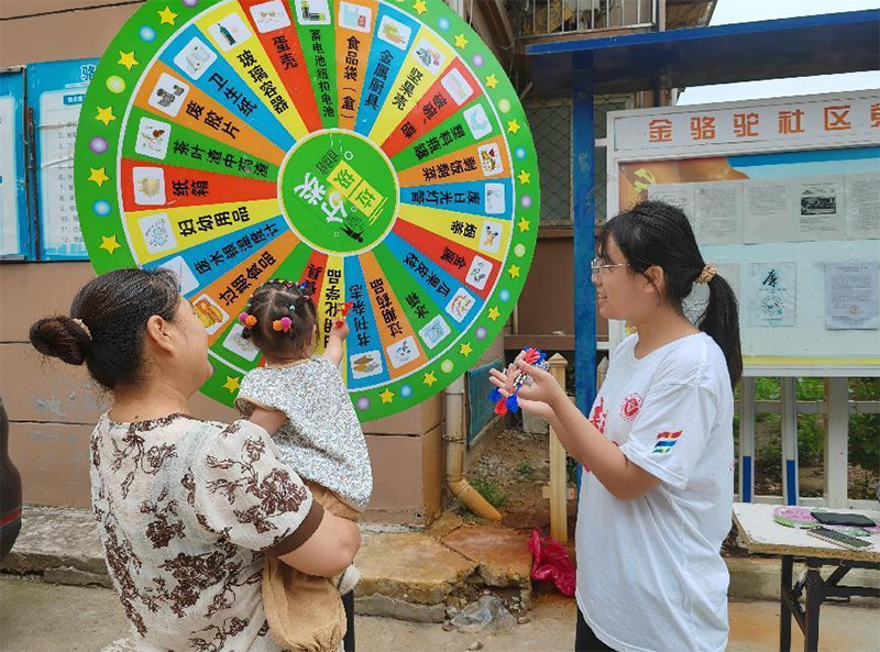 在户外,实践团设计了“垃圾投一投”“绿色转盘”等趣味小游戏,许多小朋友和大人参与其中,亲身体验了一把如何进行垃圾分类。