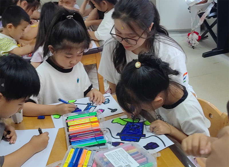 最后,实践团带领着小朋友拿起画笔自由发挥,在纸板上涂鸦,画出他们眼中的环保生活。小朋友们天马行空的想象,给这次实践活动增添了一抹活力的色