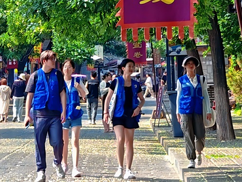 首站青州古城,这是一座拥有丰富历史和文化遗产的地方。实践团成员们漫步在东阳城历史文化街区,古朴的店铺、热闹的市集让队员们仿佛穿越回了古代。他们品尝了当地的传统美食,感受了青州古城的历史魅力。在当地导游的带领下,他们详谈了“朝天锅”背后的制作工艺和传奇故事,这道美食不仅是味蕾的享受,更是文化传承的见证。此外,他们还发现许多古建筑在近年来得到了有效的修复和重建,这不仅是国家对古城保护重视的体现,也是文化自信的彰显。