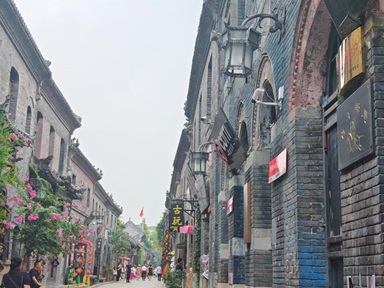实践团的最后站点是淄博周村古城。周村古城位于山东省淄博市周村区,是一座历史悠久、文化底蕴深厚的古城。队员们一抵达周村古城,就被其古色古香的街景所吸引。他们首先登上了观海楼,俯瞰整个古城的全貌。从高处望去,古城的布局一览无余,古色古香的建筑群与现代城市的景象形成了鲜明的对比,让他们对古城的历史和文化有了更为直观的认识。