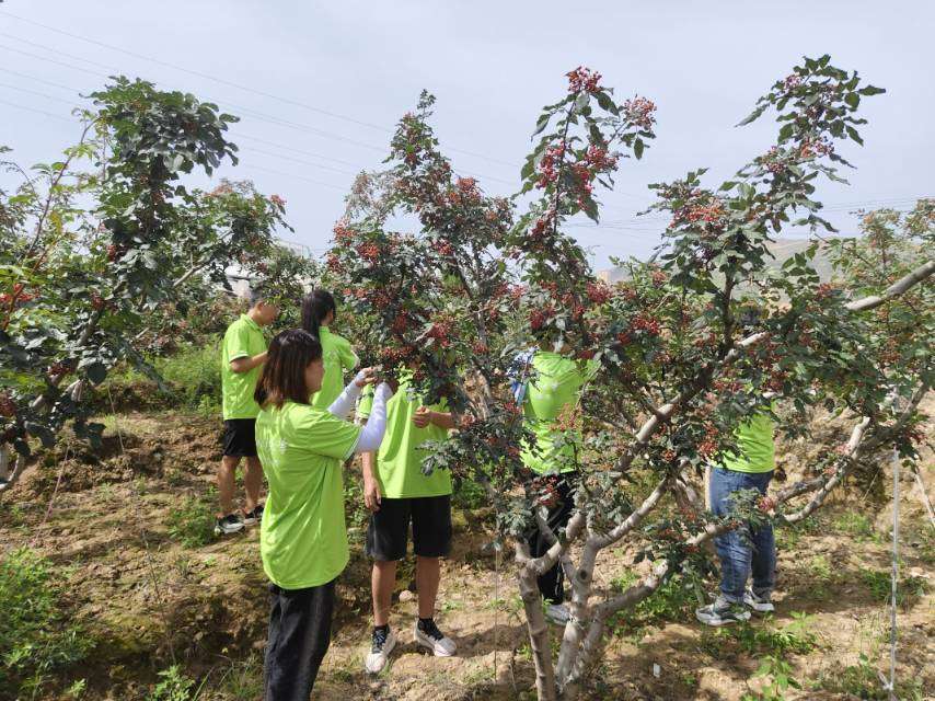图为实践团队走进甘谷花椒种植基地帮助农户采摘花椒(王慧珍供图)