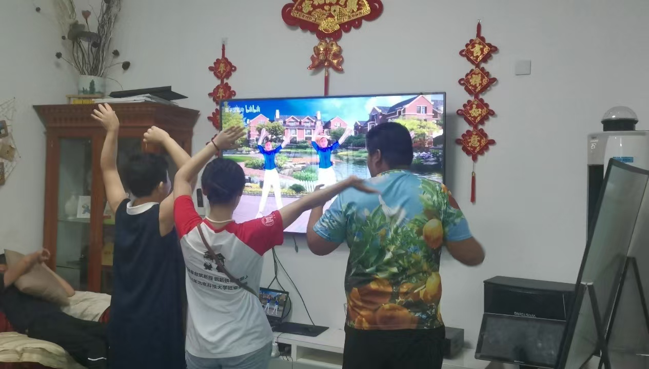 慧灵家合的老师热情地迎接了我们,让我们感到惊讶的是,一名来自星星的孩子也跟着走出屋门,向我们打起招呼。进门后,一阵轻快的音乐声入耳,原来是几个孩子在跟随视频做早操。老师向我们介绍每一位孩子的特点,让我们对孩子们有初步了解。