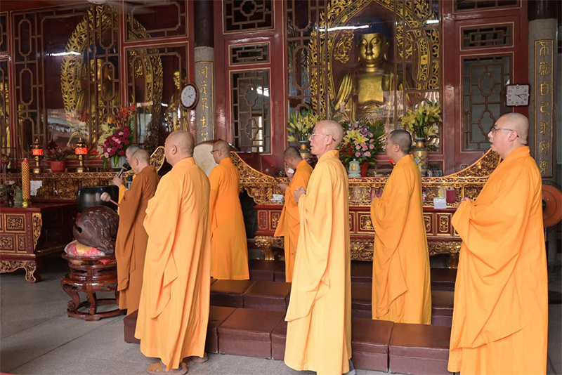 在工作人员的引导下,实践队逐一参观了龙山寺内的各个殿堂。从庄严肃穆的大雄宝殿,到宁静祥和的圆通宝殿,再到古朴典雅的钟鼓楼,让实践队队员在细微之处感受到了龙山寺深厚的历史底蕴。同时,殿堂内外的壁画、雕塑和古迹,为古寺渲染出浓厚的文化氛围,实践队的成员们在参观了解的过程中深受启发,对中国的传统文化有了更深的认识和体会。