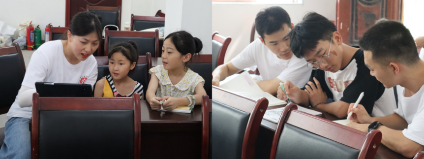 过程中,团队成员与当地中小学生进行了一场心与心的交流。针对中小学生在学业上的困惑,成员们进行了作业辅导。耐心地解答每一个问题,温故而知新,有效提高学习能力和方法。