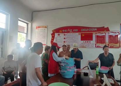 (图为实践队员给留守老人分发脸盆 通讯员 李雅婷 摄)