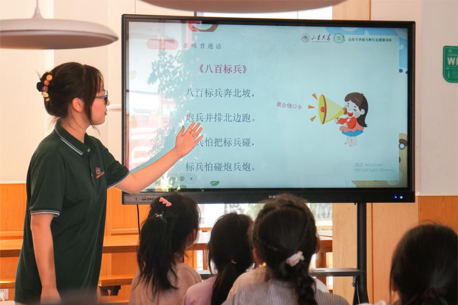 汉语普通话是中国人沟通的桥梁,是传承优秀传统文化的载体。为加大国家通用语言文字推广力度,助力教育强国、文化强国建设,山东大学外国语学院赴贵州毕节推普助力乡村振兴依托支教活动,结合赫章县金银山社区的具体情况,策划了推普助力乡村振兴的活动,旨在提高普通话普及率,促进教育资源均衡化,服务筑牢中华民族共同体意识。队员们发挥专业优势,
