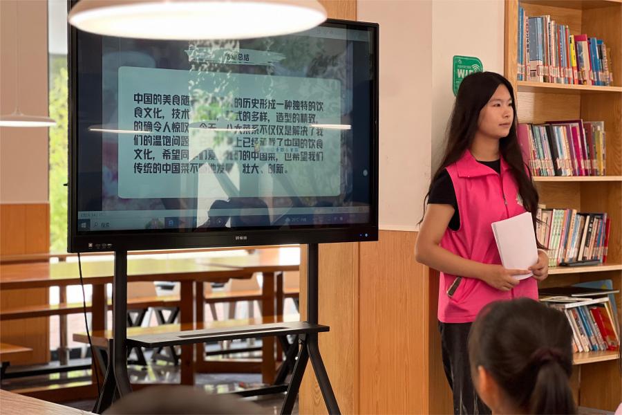 童语道童音,推普向未来。普通话对内承担着主力乡村振兴、筑牢中华民族共同体意识的使命,对外也肩负着“讲好中国故事”、提升文化软实力的责任。在中年级的课堂上,队员黄诗艺向同学们系统地进行了普通话的科普。黄诗艺带领孩子们进行情景演绎,练习常用的普通话礼貌用语,在轻松欢快的课堂气氛中带动着孩子们对普通话的认识。她还特别向孩子们说明了易错文字的读音,并和孩子们一起挑战绕口令、断句、朗诵、词语接龙等趣味小问题,切实提高同学们的普通话水平。