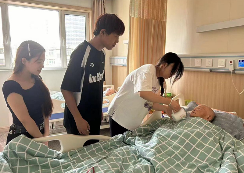 实践初期,实践团成员们抵达服务中心,在与工作人员了解到老人们的日常生活后,主动协助进行一些不能自理的老人们的情况,在得知老人需要用针管进行喝水的时候,实践团成员们主动协助拿起针管给老人喝水。为服务中心的工作人员减轻压力。