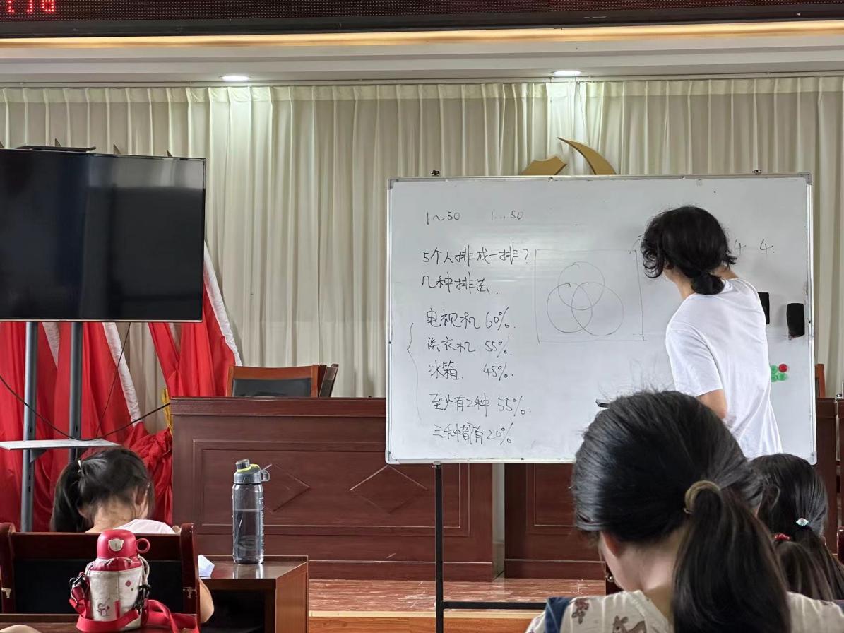 经过十五分钟的课件休息,由我给孩子们带来最后一节数学课。本节课采取狼人杀的形式,同学们通过回答问题来得知狼人线索。我把之前课程讲过的计数问题中的分类枚举、分步乘法、排列组合、容斥原理内容融入到问题之中,孩子们在玩游戏的同时积极思考问题,在此过程中把知识融汇贯通。在本节课的最后,我给孩子们总结了计数原理和方法之间由易到难、由特殊到普遍的思想,孩子们本节课积极思考,收获了很好的课堂效果。
