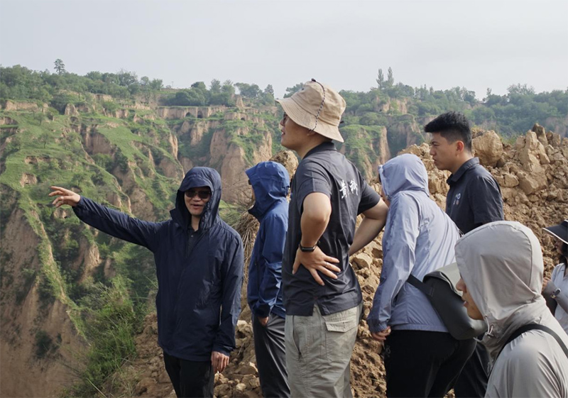 图为马鹏辉教授为实践队讲解黄土塬区黄土灾害链的形成与演化。丁光盛 摄