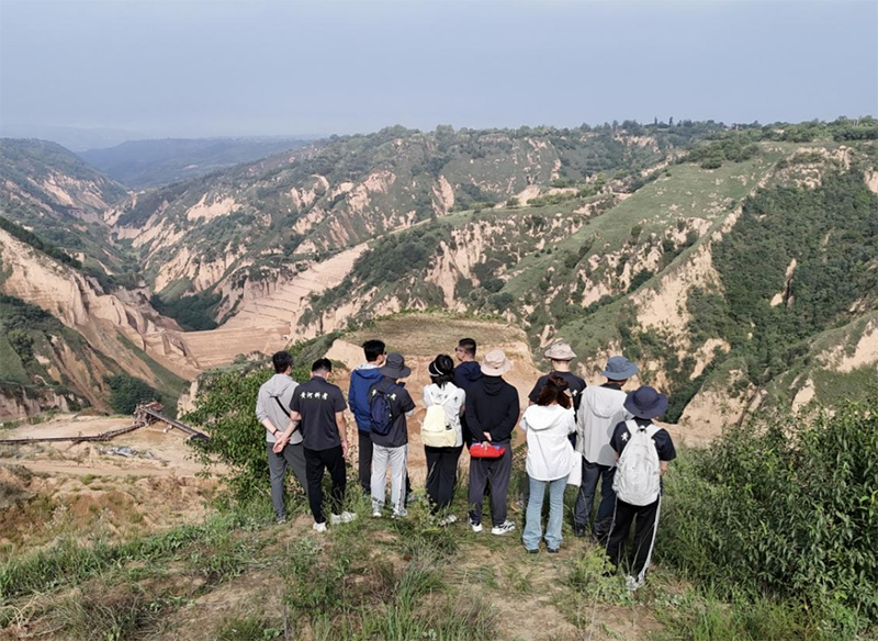 图为实践队成员参观典型沟谷区黄土地貌。李泽坤 摄
