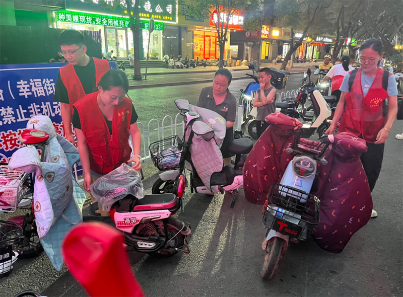8月5日下午7时整,参加活动的志愿者们各司其职,规范整理违规乱放的单车,积极引导停车的群众遵守停车秩序、规范停车、保持道路整洁。对于不文明停放车辆的群众进行劝说并引导其规范停车,倡导大家做文明的骑行者、规范停车的宣传者,得到了来往群众的认可和赞扬。