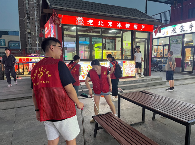 8月3日下午7时整,无极县爱心志愿者协会会长及书记在指定集合地点清点人数,分发志愿者红色马甲并讲解此社会实践活动要求、清扫范围以及注意事项。当日下午7时30分,青年志愿者身穿红马甲,手拿笤帚、簸箕把道路上的烟头、纸屑、塑料袋、枯树叶等垃圾打扫干净,为群众提供良好的公共环境,以优质的服务为街区发展注入“青春活力”。