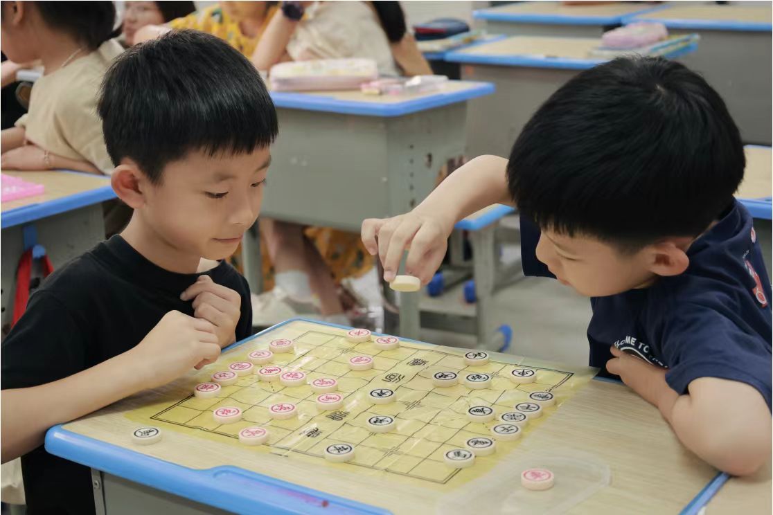 支教的日子里不只有传授科普类课程,还有来自各方面的乐趣。此次守护行动的成员们在7月11日为小候鸟们举办了一次关乎技术与智慧较量的棋艺竞赛,涵盖了中国象棋,五子棋,跳棋三大棋类,旨在通过棋艺交流,培养小候鸟们的思维能力、策略规划和公平竞争的精神,同时也是进一步丰富他们的业余生活,教授他们棋艺技巧,让他们在棋盘中感受比拼,享受乐趣。