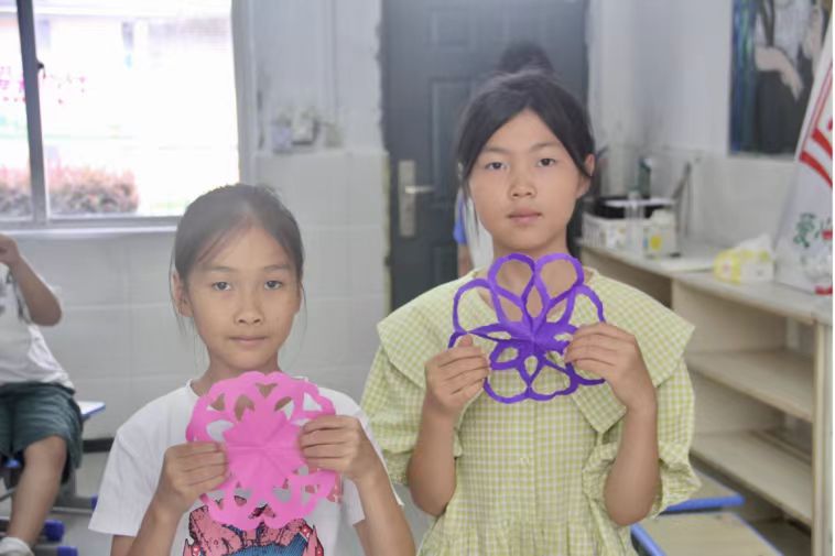 图为小候鸟们剪纸作品展示。通讯员 吴嫣然 摄