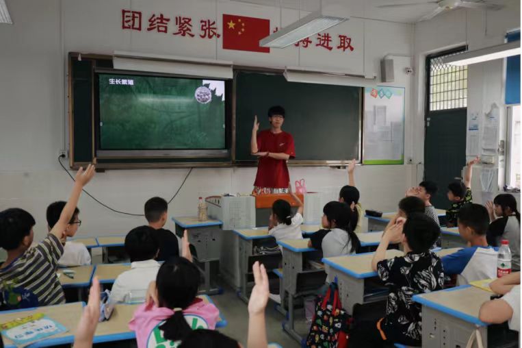 图为课堂上小候鸟们积极举手。通讯员 单彤彤 摄