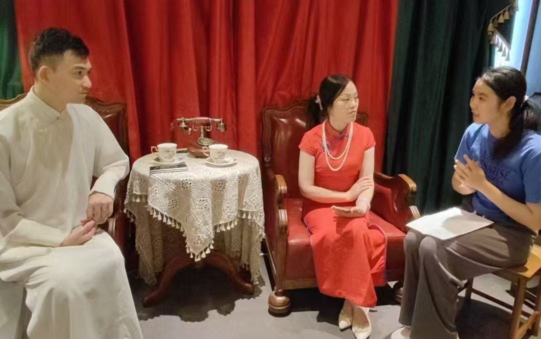 队员与评弹演员对话。缪云菲 供图