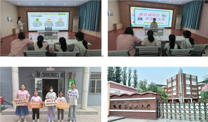 普通话启蒙,文化共生长 当地学生们提升普通话水平较为迅速,为了更高效的推普,实践小队进入了哈密第六小学,举办了《童语诵同音,推普助未来》小课堂活动。活动通过讲解普通话与中华文化的关系、学习普通话学习方法、趣味绕口令游戏、文字知识答疑等多种形式,吸引孩子们积极参与。队员们用寓教于乐的方法,使孩子们在愉快的课堂氛围中提高了普通话水平,了解了学习使用普通话的重要性,同时加深了对中华文化的理解和热爱。这次活动的成功举办,不仅促进了普通话的普及,也为文化的传承和乡村发展注入了新的活力。