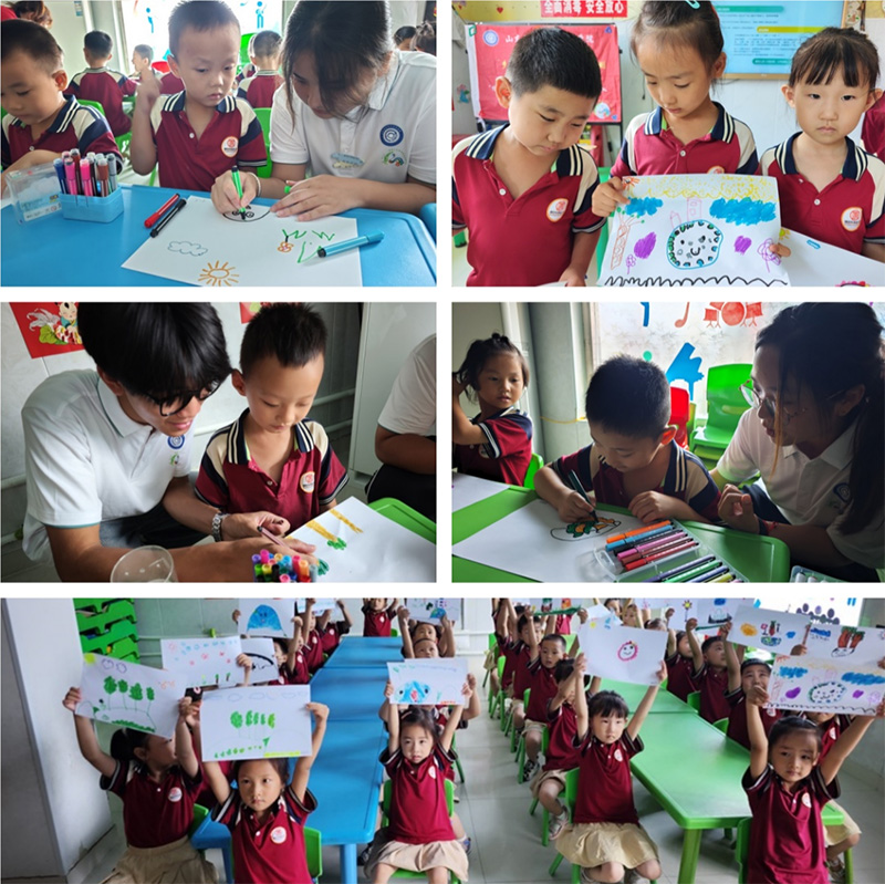 在环保美术课堂上,志愿服务队的成员们通过引导孩子们运用五彩斑斓的画笔,将他们对绿色地球的憧憬描绘在纸上。从蓝天白云到青山绿水,从清新空气到洁净街道,孩子们用画笔描绘出了自己心目中的环保世界。不仅培养了孩子们的艺术素养,更激发了他们对环保的关注和热爱。在这一过程中,志愿者们不仅是指导者,更是环保理念的传播者,通过一幅幅充满童真的画作,在孩子们心中播下了环境保护的种子。