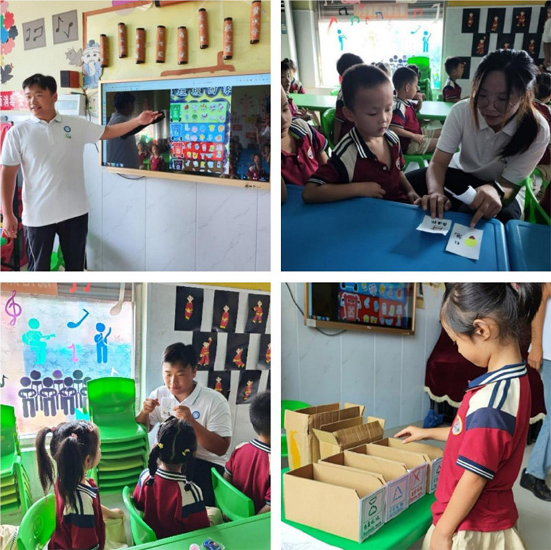 除了专业知识的传授,志愿者们还注重通过趣味活动拉近与孩子们的距离,增强彼此间的感情。在“萝卜蹲”这个游戏中,孩子们跟随着志愿者的带领,在欢乐的氛围中充分活动身体,愉快地玩耍。这个简单而充满乐趣的游戏不仅锻炼了孩子们的反应能力和团队合作能力,更让他们在轻松自由的氛围中释放了天性,感受到了集体活动的乐趣。