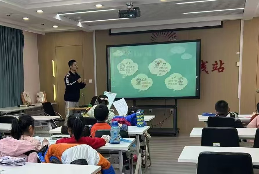 第一节课是“大雁为何南飞”。当王燕齐在黑板上画出一行展翅飞翔的大雁,孩子们那清澈的眼神里充满了好奇与期待。他微笑着问道:“小朋友们,你们知道大雁为什么要南飞吗?”教室里瞬间热闹起来,稚嫩的声音此起彼伏,有的说是为了找温暖,有的说是为了寻找食物。