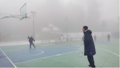 最后带领同学们开展户外课程——五禽戏的跟练。五禽戏是中华民族传统的强身健体方式,结合健康中国2030规划纲要,推行健康生活方式。黄晓和杨名威带领同学们充分热身后,演示并引导同学们跟练五禽戏中的虎戏。同学们积极参与,展现出了极高的热情!