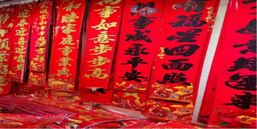 图为新年期间实践队队员拍摄的集市对联。中国青年网通讯员 张晓冉 供图