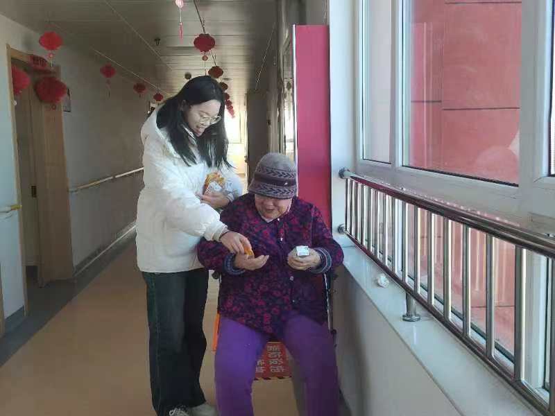 活动中,实践团成员分头活动,有的与老人一对一交流,倾听老人讲述过去的故事;有的给老人送零食牛奶,给老人们带来温暖;还有的积极参加到养老院的日常工作中,帮助老人打扫卫生、整理内务,为他们创造一个更加整洁、舒适的环境。