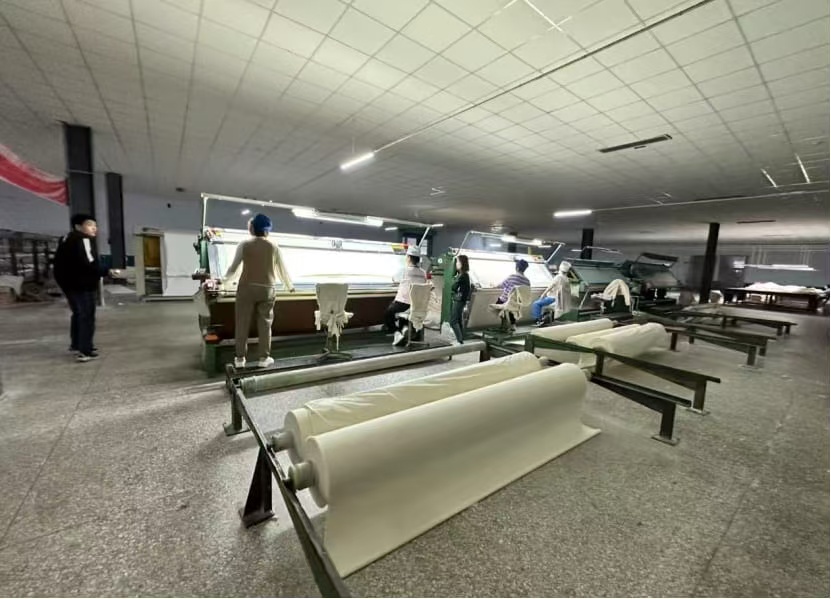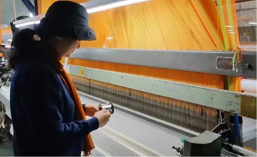 图为车间工人机械化纺织面料。姜佳丽 供图