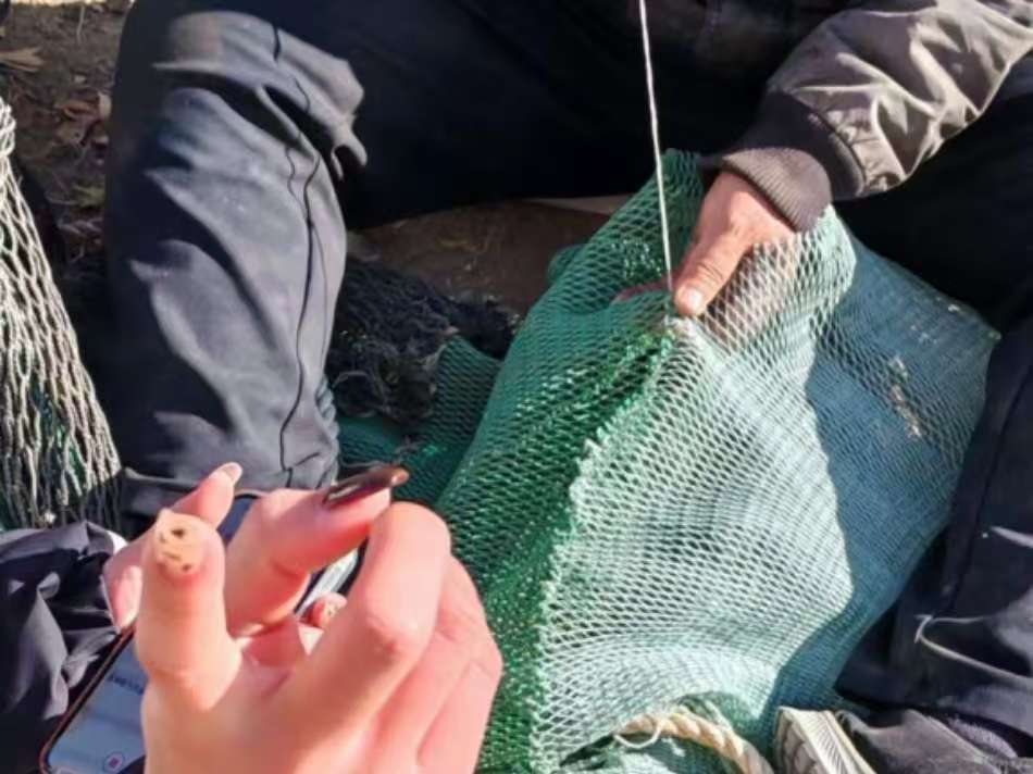图为一位村民在自行修补渔具 马雅茹供图