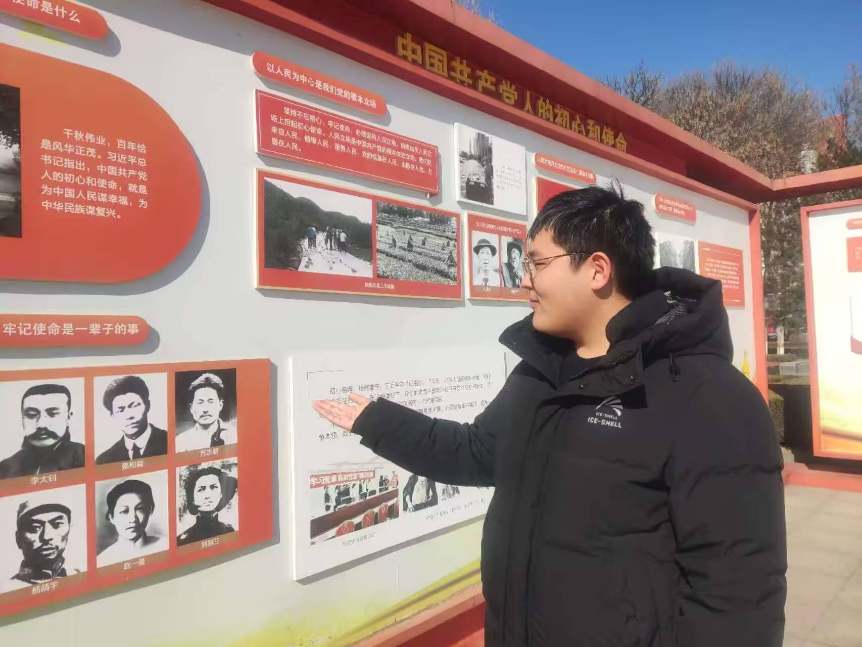 为了深入学习党的光辉历史,从党由嘉庆南湖的小小红船成长为叱咤风云的时代巨轮的历史发展中更加深刻的认识到何为“中国共产党是中国人民和中华民族的先锋队,代表中国最广大人民的根本利益”,坚定对党的信仰,加强对党的崇敬,并从党史中感受并学习不断传承的红色精神,于2025年2月6日,曲阜师范大学“传红色薪火,铸革命之魂”社会实践队队员付昱翔来到德州市平原县和谐广场红色文化广场开展寒假社会实践活动,通过学习党的历史、平原县的革命史与发展史,感受到深厚历史中所蕴含的党的力量和人民的力量,从而增加对党和人民的敬意,进而坚定理想信念,勇担时代使命,为实现中华民族伟大复兴与第二个百年奋斗目标出一份力。