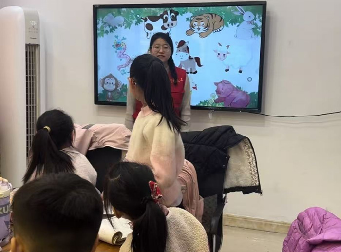 图为实践团成员纪梦婷为孩子开展特色课堂讲解十二生肖的知识