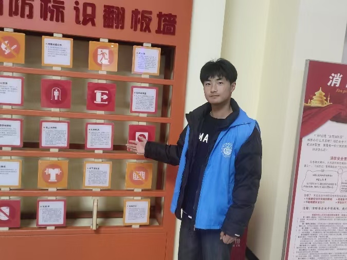 实践团成员以消防标识翻板墙为道具,开展消防知识科普。他们边翻展板,边结合生活场景讲解各类消防标识,分享在不同场所识别标识避险的方法。