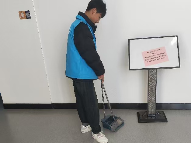 实践团成员开展义务清扫活动。拿着扫帚、拖把、抹布等工具,认真打扫地面、擦拭展柜展品,连卫生间也清理得干干净净,不放过任何死角。