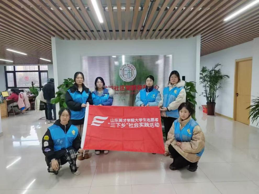 图为实践团成员在山东省济南市历城区唐冶街道绿地城社区党群服务中心的合照