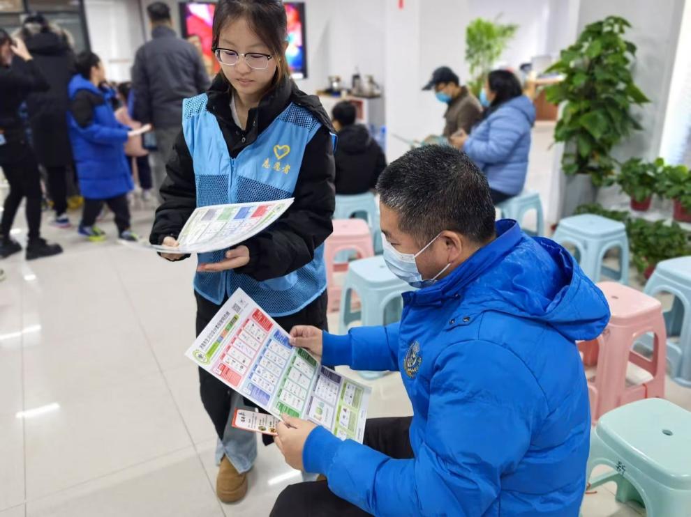 图为实践团成员王寒向居民分发垃圾分类宣传单