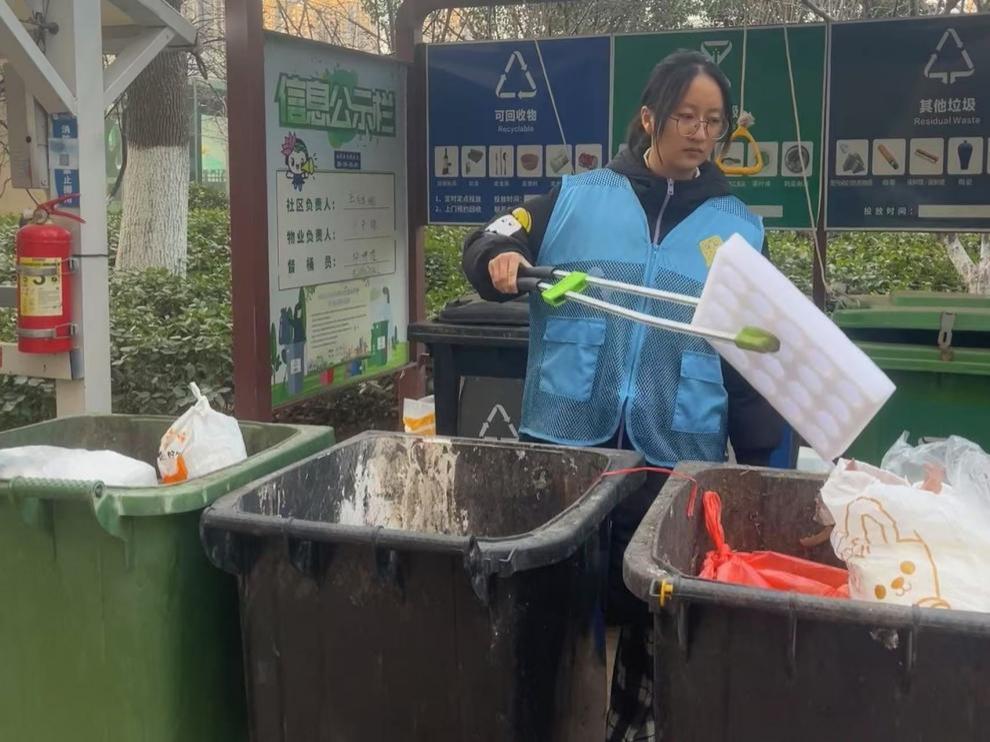 在接下来两天的社区环保行动中,实践团成员主动清理街道,捡拾垃圾,进行垃圾分类,擦拭被乱涂乱画的布告栏。