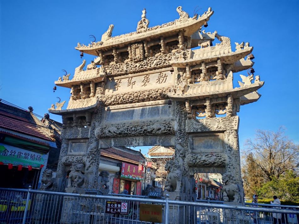 踏入单县牌坊古城景区,一股古朴而庄重的气息扑面而来。首先映入眼帘的是百寿坊,它静静地矗立在胜利北街,仿佛在诉说着岁月的故事。坊体由青色鱼子状石灰岩构成,通高13米、宽8米,四柱三间三层楼阁式建筑气势恢宏。仔细观察牌坊上的雕刻,那一个个形态各异的“寿”字,或端庄大气,或飘逸灵动,无不展现出古代书法的魅力。坊座上的雄狮、蚊龙、仙鹤等图案,更是栩栩如生,令人赞叹不已。在古代社会,长寿被视为福气的象征。而百寿坊的每一个“寿”字,不仅仅是书法艺术的展现,更寄托了人们对健康长寿的美好祝愿。